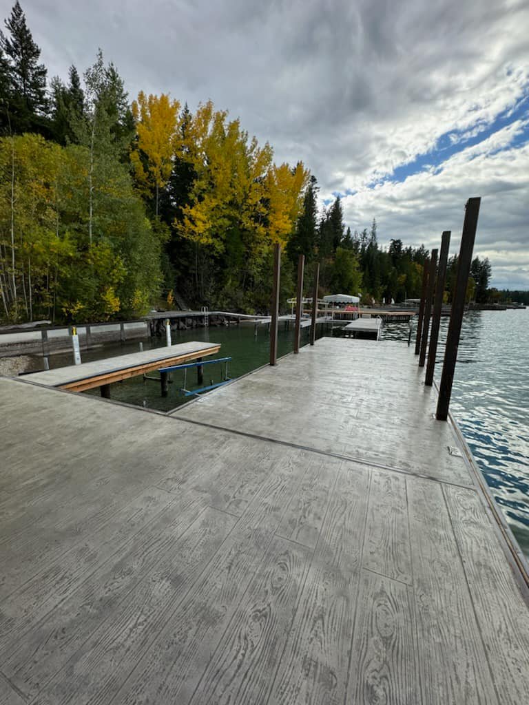 At Dock Masters our docks are built to last. We only use top of the line products, including TimberTech PVC decking. It is super durable and made with recycled polymers (absolutely no wood fibers), it is resistant to moisture damage like mold and mildew, and it won’t splinter, crack, peel, or rot. It is low maintenance and is protected with a 50-year Fade and Stain Limited Warranty and a Lifetime Limited Product Warranty. TimberTech stays up to 30% cooler to touch with 40% better traction, wet or dry, than the competitive products. With versatile color selections and wood grain choices, you’re sure to find the perfect look to enhance your lake property. We also build wood and concrete docks that can be stamped in various designs.